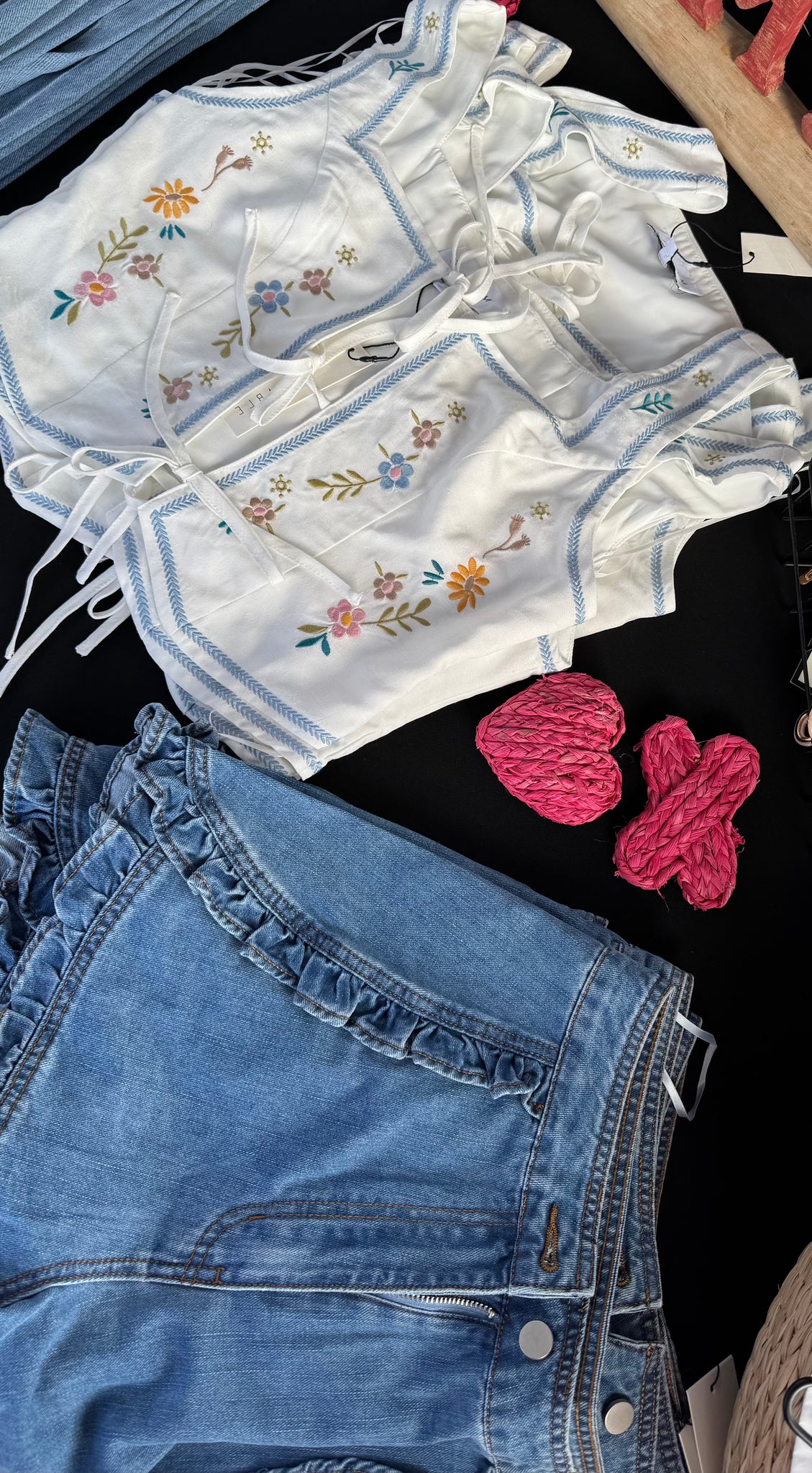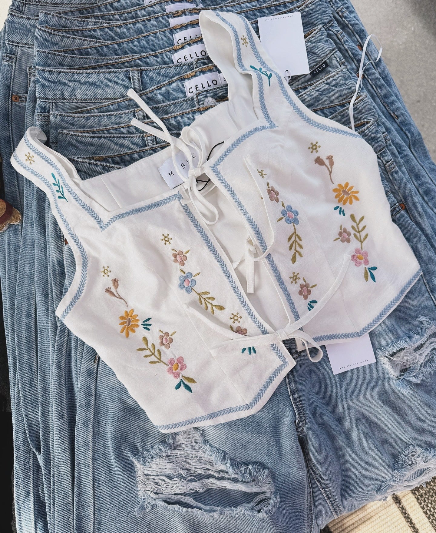 Maisie floral embroidery self tie top